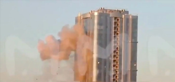 İHA'lardan birinin Saratov şehrindeki çok katlı binaya çarpma anına dair görüntüler sosyal medyada yer aldı.