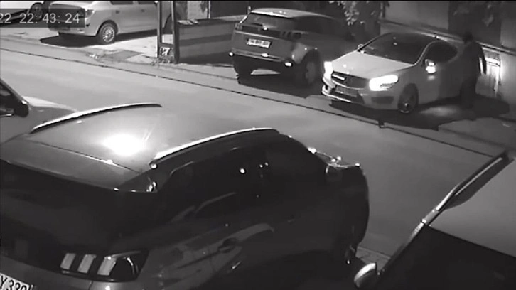 Güvenlik kamerası kayıtlarında, olay yerine gelen iki kişiden birinin park halindeki aracı otomobil anahtarıyla açtığı ve daha sonra çalıştırdığı araçla otoparktan ayrıldığı görülüyor.