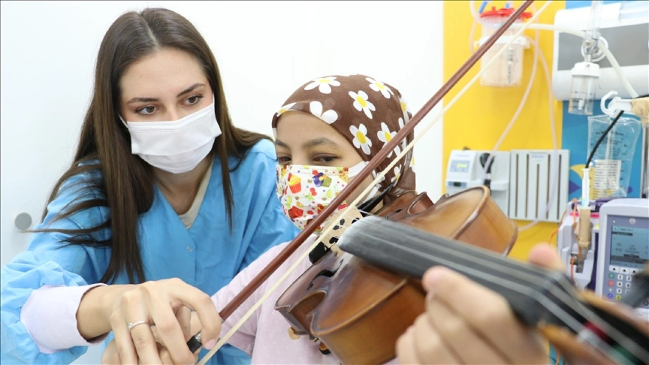 Öğrencilerden Burcu Kevser Tuğrul ise hastanede keman öğrettiği çocuklardan Ecrin ile çok güzel vakit geçirdiğini söyledi.