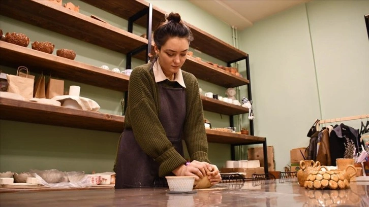 Düzce Valiliği Kadın Emeği Merkezinde tahsis edilen iş yerinde 2 yıl önce seramik atölyesi kuran Beyza Başak Anakan, çamurdan şekillendirdiği ürünlerini çevre iller başta olmak üzere birçok kente gönderiyor.