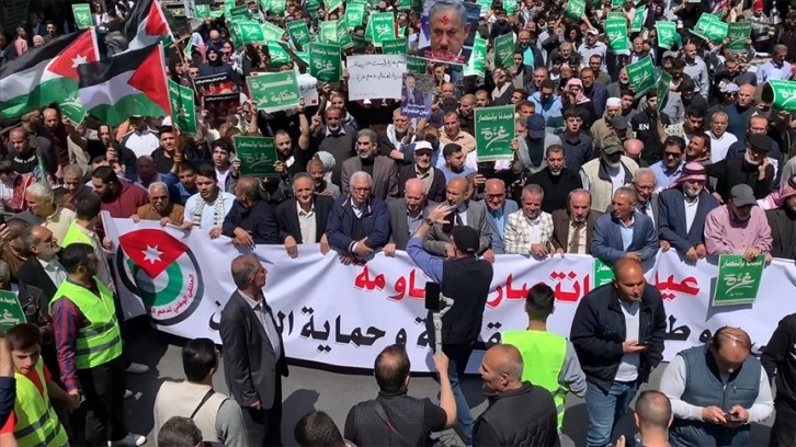 Ürdün'ün başkenti Amman'da yüzlerce kişi, Ramazan Bayramı'nın üçüncü gününde, 6 aydır İsrail saldırılarına maruz kalan Gazze Şeridi ve Filistin direnişine destek olmak amacıyla gösteri düzenledi.
