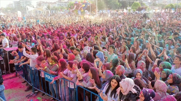Uşak Belediyesi Genç Kuşak Topluluğu tarafından Atapark'ta düzenlenen GençKuşak Fest'te katılımcılara Uşak Belediyesince çeşitli renklerdeki toz boyalar dağıtıldı.