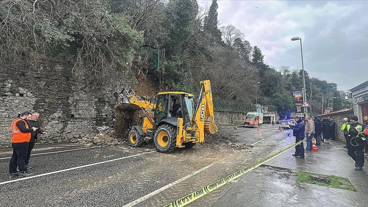 Kandilli Mahallesi Göksu Caddesi'nde ormanlık alanın istinat duvarı, henüz belirlenemeyen nedenle çöktü.