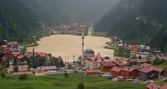 Bölgede dünden beri etkili olan yoğun yağmur sonucu Haldizen Deresi'nin getirdiği çamurlu sular, Uzungöl'e ulaşırken çamurlu sular gölün renginı maviden kahverengiye dönüştürdü.