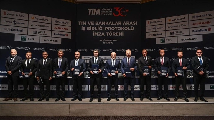 TİM ile 11 bankanın katılımlarıyla gerçekleştirilen "Vade(SİZ) İhracat Kredi Paketi" imza töreni TİM merkezinde düzenlendi. "Vade(SİZ) İhracat Kredi Paketi" kapsamında, ihracatçı firmalar azami 5 milyon dolar veya 100 milyon TL'ye kadar uygun maliyetli ihracat kredisinden yararlanabilecek.