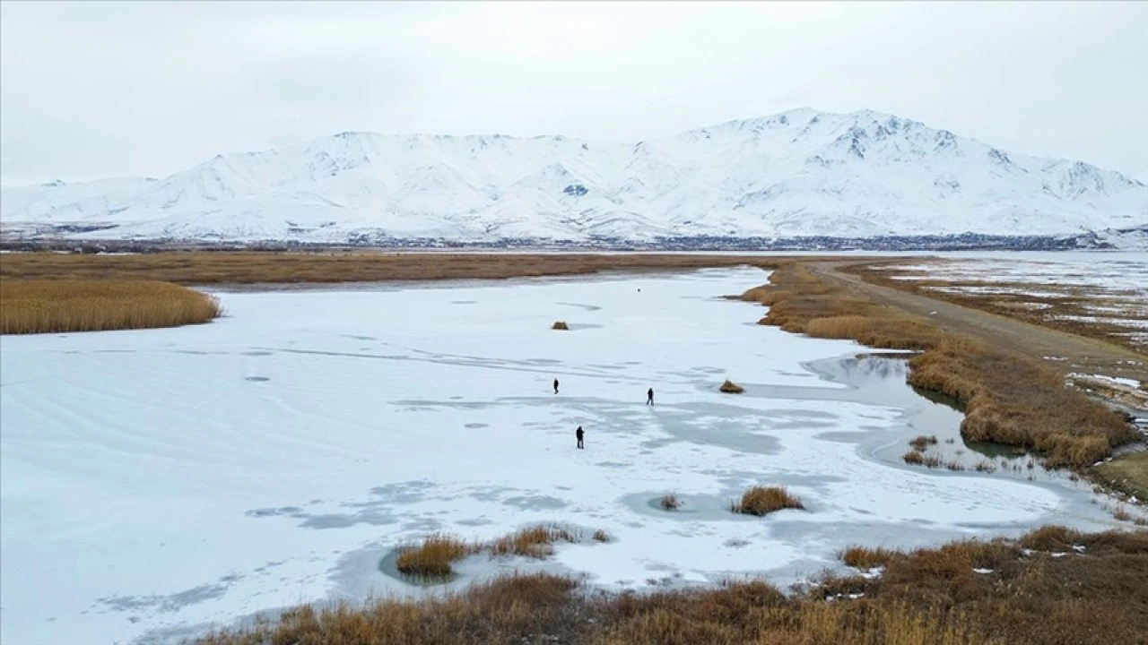 Hava sıcaklığının gece sıfırın altında 10 dereceye kadar düştüğü kentte, Edremit ilçesindeki Dilkaya Sazlığı'nın yüzeyinin büyük bölümü buz tuttu.