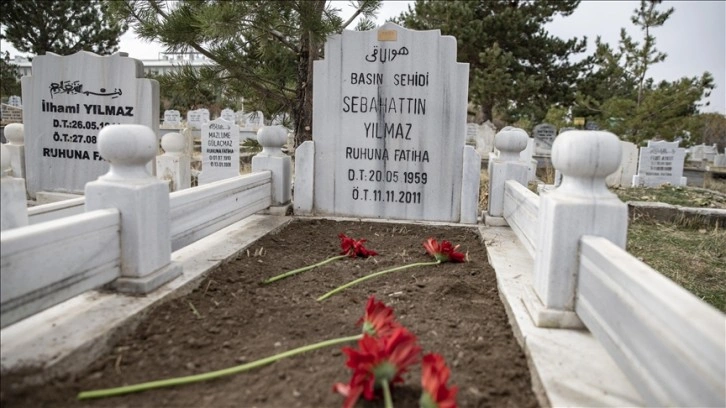Protokol üyeleri ve gazeteciler, Kur'an-ı Kerim okunmasının ardından dua ederek Yılmaz'ın mezarına çiçek bıraktı.