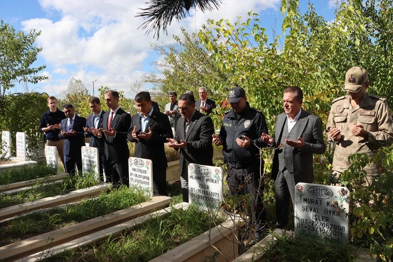 Kaymakam ve Belediye Başkan Vekili Nuri Mehmetbeyoğlu ile kurum amirleri, Beyazıt Mahallesi'ndeki Seyyit Muhammed Mezarlığı'na geldi.