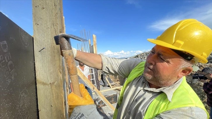 Yaklaşık 15 gün önce Van'ın Erciş ilçesinden Özbek Mahallesi'ne gelen ustalar, kendileri gibi evlerini kaybeden Kahramanmaraşlı depremzedelerin en kısa zamanda sıcak yuvalarına kavuşması için ter döküyor.