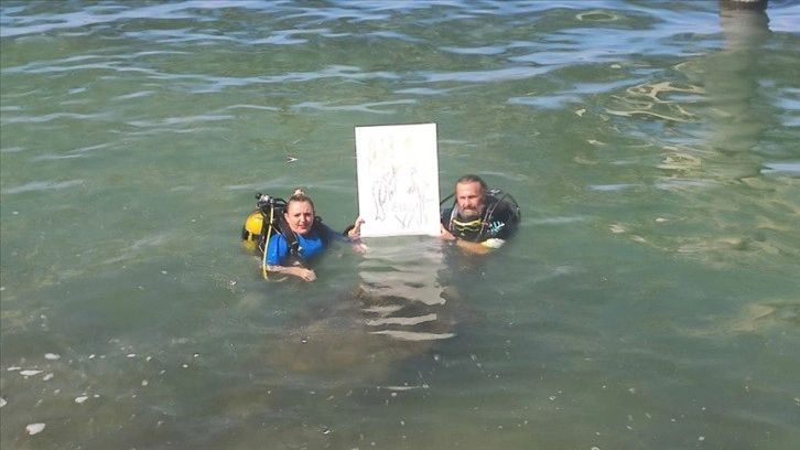 Edremit Belediyesinden yapılan açıklamaya göre, su altına dalış yaparak resim çizen ressam İlim, belediyenin düzenlediği etkinliğe katıldı.