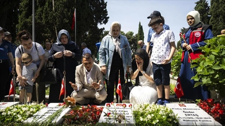 Şehit polislerin kabirlerine karanfiller bırakıldıktan sonra lokma ikramı yapıldı.