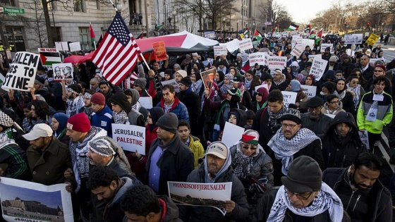 ABD'nin başkenti Washington'da toplanan binlerce gösterici, Başkan Donald Trump'ın Kudüs'ü "İsrail'in başkenti" olarak tanıma kararını protesto etti.