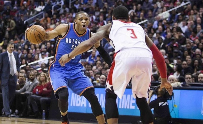 ANKARA (AA) - Amerikan Basketbol Ligi'nde (NBA) Oklahoma City Thunder forması giyen Russell Westbrook, 42 kez üç istatistikle çift hanelere ulaşarak bir sezonda en fazla "triple double" yapan oyuncu oldu.