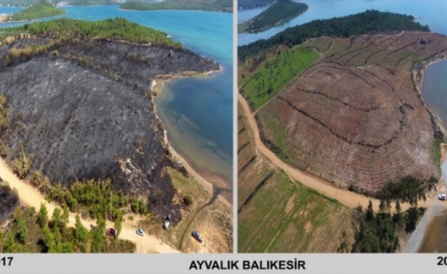 Balıkesir'in Ayvalık, İzmir'in Foça ilçesi ve Meryemana bölgesi ile Antalya'nın Taşağıl bölgesinde yanan ormanlık alanlar, yürütülen ağaçlandırma çalışmalarıyla "yeşil dönüşüm" sürecine girdi.