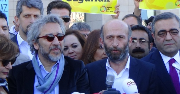 Tutuklu akademisyenlerle davalarının aynı güne denk gelmesinin iyi bir tesadüf olduğunu aktaran Can Dündar ise “Basın özgürlüğünü ilgilendiren önemli bir dava ve ifade özgürlüğünü dile getiren akademisyenlerin davası bir araya geldi. Çok daha güçlüyüz bugün burada. Tek tek yargılanmak yerine bir arada bir birimizin mücadelesine sahip çıkmayı önemli buluyorum. İki önemli damar Çağlayan önünde araya geldi. Bugün öğretim görevlilerimizi alıp dışarı çıkarmaya geldik. Kendi davamızdan çok onu önemsiyoruz. Hep birlikte buradan Silivri’ye gideceğiz ve onları alıp çıkartacağız” diye konuştu.