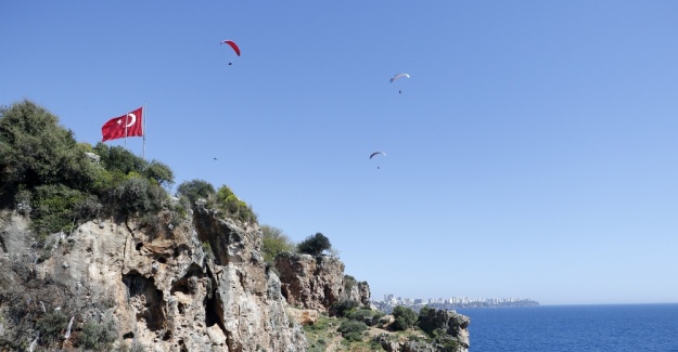 Antalya’da paraşütçüler, belirli bir bölgede yamaç paraşütünün yasaklanmasına rağmen uçuşa devam ediyor. Antalya’nın Muratpaşa ilçesindeki varyantlar güneşli ve rüzgarlı havayı fırsat bilen yamaç paraşütçülerinin uğrak yeri...