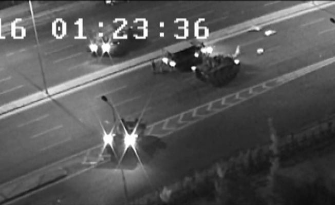 Görüntülerde, buna rağmen karargahın önünden ayrılmama konusunda kararlılık gösteren vatandaşların arasından ayrılan 4 kişi, Alparslan Türkeş Bulvarını tutan iki zırhlı aracın bulunduğu tarafa yönelerek buradaki askerleri ikna etmeye çalışıyor.