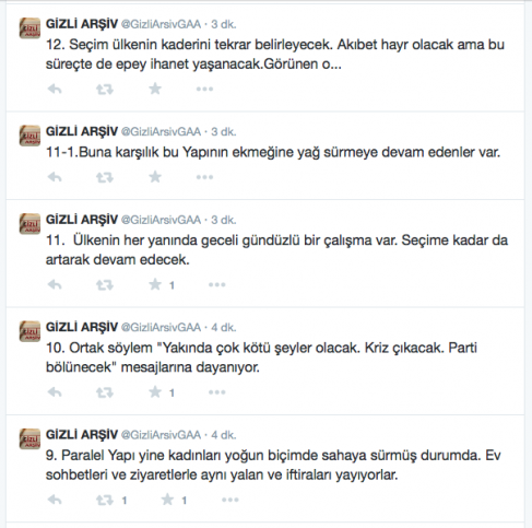 İşte, “Gizli Arşiv” kullanıcı hesabından atılan mesajlarla Paralel Yapı'nın çalışmalarına dair, Twitter üzerinden dikkat çekilen bazı hususlar...