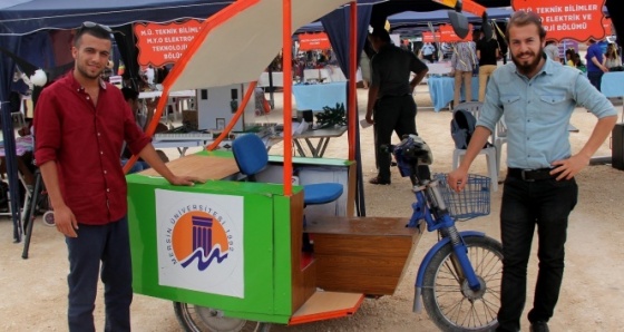 Mersin'in merkez ilçe Mezitli Belediyesi'nin bu yıl 7.'sini düzenlediği Soli Güneş Festivali devam ediyor. Festivalde yenilebilir enerji kaynaklarından olan güneş enerjisinin önemi vurgulanırken, açılan stantlarla da güneş enerjisiyle üretilen ürünler tanıtılıyor. Festivalin en dikkat çeken çalışmalarından biri ise MEÜ Teknik Bilimler MYO Elektrik ve Enerji Bölümü'nde okuyan öğrencilerin ürettiği güneş enerjili engelli elektrikli araç oldu. Araçla engelli kişi hem ulaşımını sağlayabilecek hem de aracı seyyar ürün pazarlamasında kullanabilecek. 8 öğrencinin 5 ay gibi kısa bir sürede yaptığı araç, saatte 25-30 kilometre arası hıza ulaşıyor.