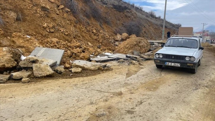 Bazı evlerin yıkıldığı mahallede fay kırığı nedeniyle dağdan kopan büyük kaya parçaları yola düştü.