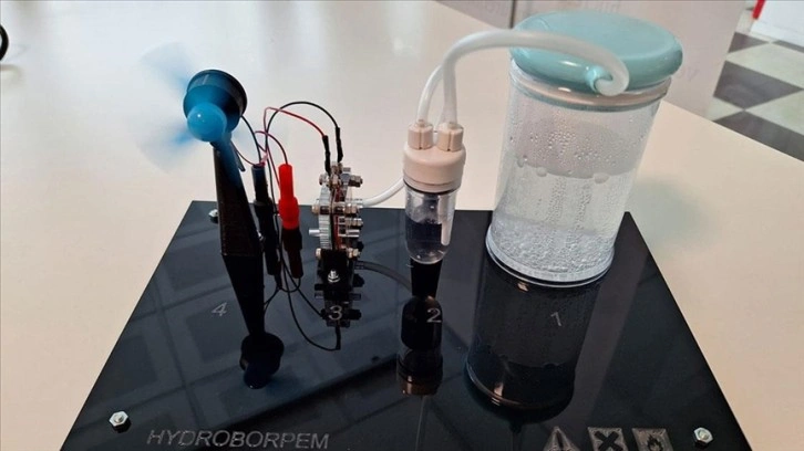 "İki tane deney kitimiz var. Biri, saf sudan hidrojen üretip bu hidrojeni yakıt hücresinde elektriğe çevirmeyi gösteren deney kitimiz. Diğer kitimizin ise dünyada muadili yok, kendimiz geliştirdik. Ülkemiz bor rezervi açısından oldukça zengin. Bor da aslında bir hidrojen depolama malzemesi olarak öne çıkıyor. Bu noktada, sodyum borhidrür dediğimiz içerisinde hidrojen atomlarıyla birleşmiş bir toz kimyasal var. Bundan nasıl hidrojen üretilir diye Sodyum Borhidrür Yakıt Hücresi Eğitim Kitini hazırladık."