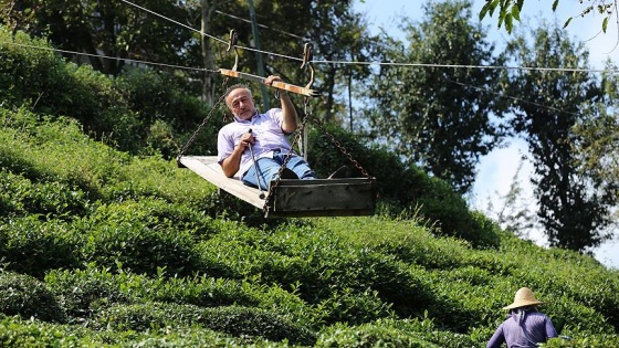 Çayeli ilçesine bağlı Hassadıklar Mahallesi'nde yaşayan 54 yaşındaki Kur, yolu olmaması nedeniyle evine ulaşım için kurduğu 100 metre uzunluğunda ve 5 metre yükseklikteki ilkel teleferiği kullanıyor.