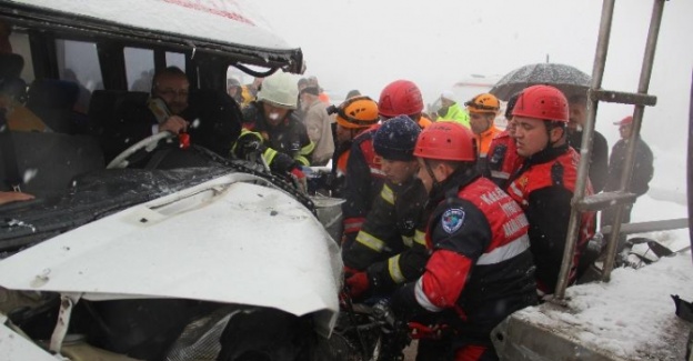 Zonguldak-İstanbul karayolunda yolcu minibüsünün yoğun sis nedeniyle önündeki kamyona çarpması sonucu 2’si çocuk 11 kişi yaralandı. Minibüste sıkışan sürücü ise yarım saat süren çalışmanın ardından kurtarıldı.
