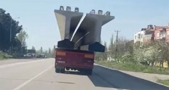Suluova yakınlarında beton blokları taşıyan tırın hiçbir tedbir almadan yolda ilerleyişi bir vatandaş tarafından cep telefonuyla kaydedildi. O anları anlatan vatandaş, “Uzun araca **** koymamışlar. Böyle oluyor mu? Görüyorsunuz” diye tepki gösterdi.