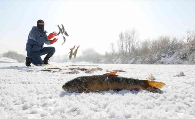 Balıkçılardan Mehmet Doru, AA muhabirine yaptığı açıklamada, avcılık için sabah erken saatlerde ovanın içinden geçen çaya gelerek, buzu kırdıklarını anlattı.