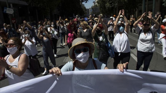 Yunanistan'ın başkenti Atina'da öğretmen ve öğrenciler, yeni tip koronavirüs (kovid-19) tedbirleri kapsamında eğitim sisteminde yapılan değişiklikleri protesto etti.