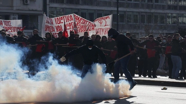 Propilea Meydanı'nda toplanan öğrenciler, parlamento binasına yürüdü.