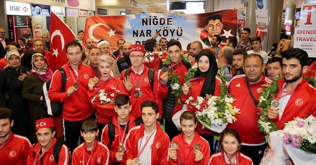 Takım halinde kazandıkları 16 madalya ile genel sıralamada dünya ikincisi olan ay yıldızlılar, Atatürk Havalimanı'nda Türkiye Tekvando Federasyonu yetkilileri tarafından çiçeklerle karşıladı. Millileri, aileleri ve sevenleri de yalnız bırakmadı.