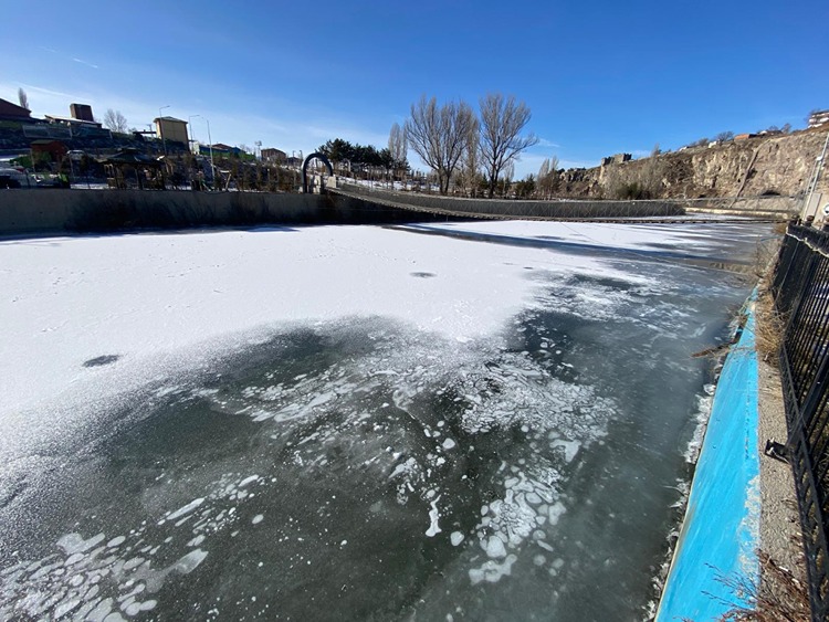 İl merkezindeki Kura Nehri ve Alabalık Deresi'nin yüzeyi buzla kaplandı.