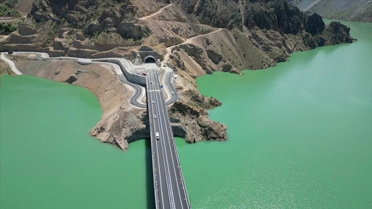 Yusufeli Barajı ve HES nedeniyle değişen kara yolu ağı kapsamında inşa edilen özel tasarım viyadükte araç geçişleri saat 08.00 itibarıyla başladı.