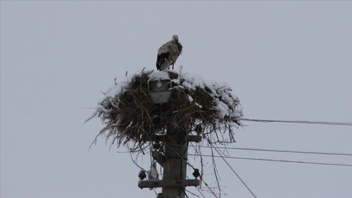 Sonbahar sonu ve kış başlarında hava sıcaklığının mevsim normalleri üzerinde seyretmesi, karın geç yağması nedeniyle ilçedeki bir leylek, kışı mevsimini İstiklal Mahallesi'nde bir elektrik direğindeki yuvasında geçiriyor.