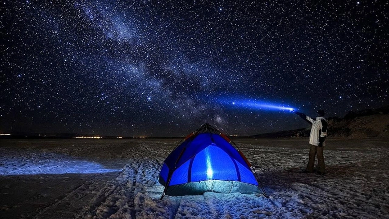 Ardahan tarafındaki tesisler bölgesine gelen 4 kişilik Grup , göl üzerinde Kamp kurarak buz üstü nde ateş yaktı.
