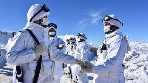 Daha sonra yün çorapları giyen Mehmetçik, çetin kış koşullarının yaşandığı bölgede terör örgütü mensuplarına karşı arazi arama tarama faaliyeti sürdürdü.