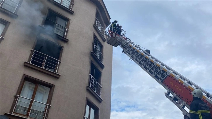 Yangına kısa sürede müdahale eden itfaiye ekipleri, binadaki 15 öğrenciyi merdiven yardımıyla apartmandan tahliye etti.