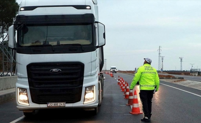 KIRKLARELİ (AA) - Edirne yolunda uygulama yapan ekipler, Ulaştırma ve Altyapı Bakanlığınca hazırlanan ve 2012'de yürürlüğe giren yönetmelik uyarınca, kış şartlarına uygun olmayan, kar lastiği takılmayan araçları kontrol etti.