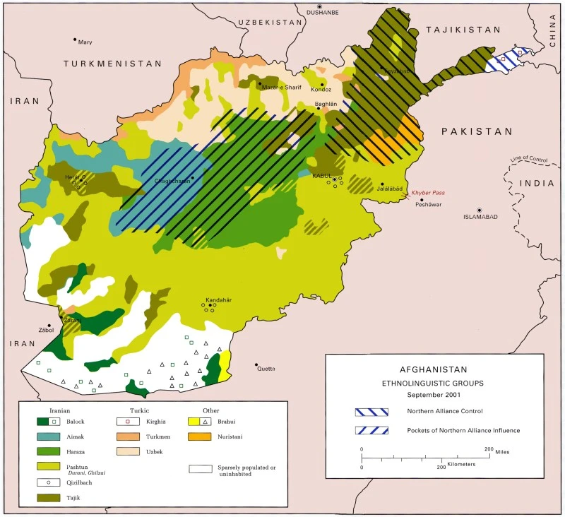Afganistan’da en kalabalık etnik grup olan Peştunlar, sadece Taliban içinde değil, mevcut yönetimde de önemli bir etkiye sahiptir. Tacikler, Hazaralar ve Özbekler gibi diğer etnik topluluklar, Peştun milliyetçiliğinin etkisi ve Taliban’ın etnik ağırlığı nedeniyle temsil eksikliği hissi yaşamaktadır. Çin ve İngiliz istihbaratının yönlendirdiği iddia edilen bazı ideolojik araçlarla kışkırtıldığı ileri sürülen Peştun milliyetçiliği, Afganistan’daki etnik dengeleri ve bölgesel istikrarı yakından etkilemektedir. Peştunlar, Afganistan’ın güney ve merkez bölgelerinde yoğun olarak yaşamakta ve ülke nüfusunun yaklaşık yarısını oluşturmaktadır. Ayrıca Pakistan’ın Afganistan sınırındaki dağlık bölgelerinde de Peştun nüfus bulunmaktadır.