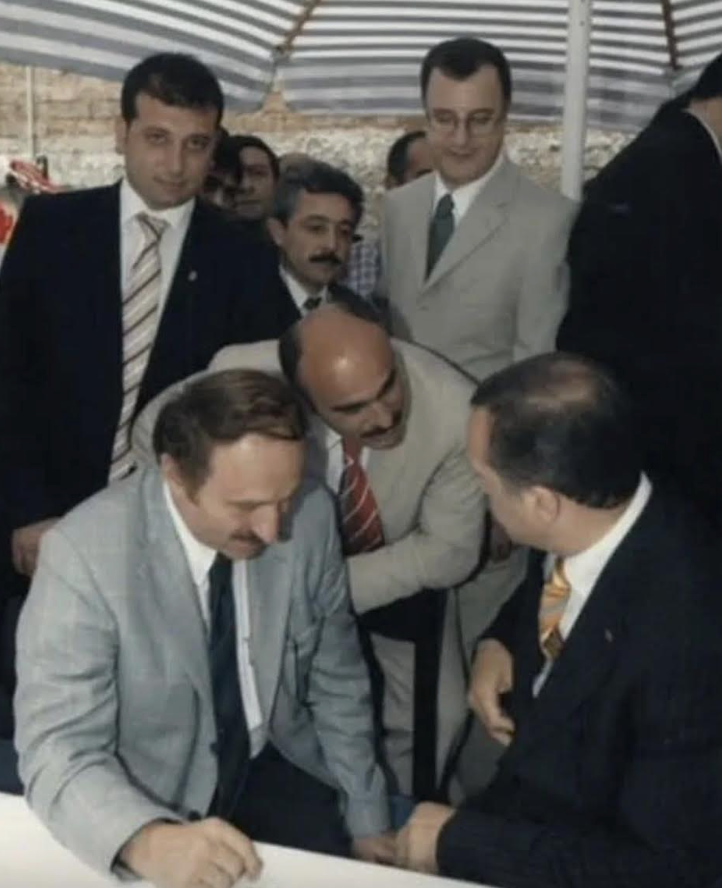 Ekrem İmamoğlu, ANAP’tan AK PARTİ’ye geçmeye uğraşırken, referansı hemşehrisi eski Bakan Faruk Özak’tı. (Önde oturan) İmamoğlu, AK PARTİ’de siyaset yapabilmek için Erdoğan’la görüşmeye çalışıyordu. Hatta o dönem AK PARTİ’ye 7 bin dolar da bağış yaptı.